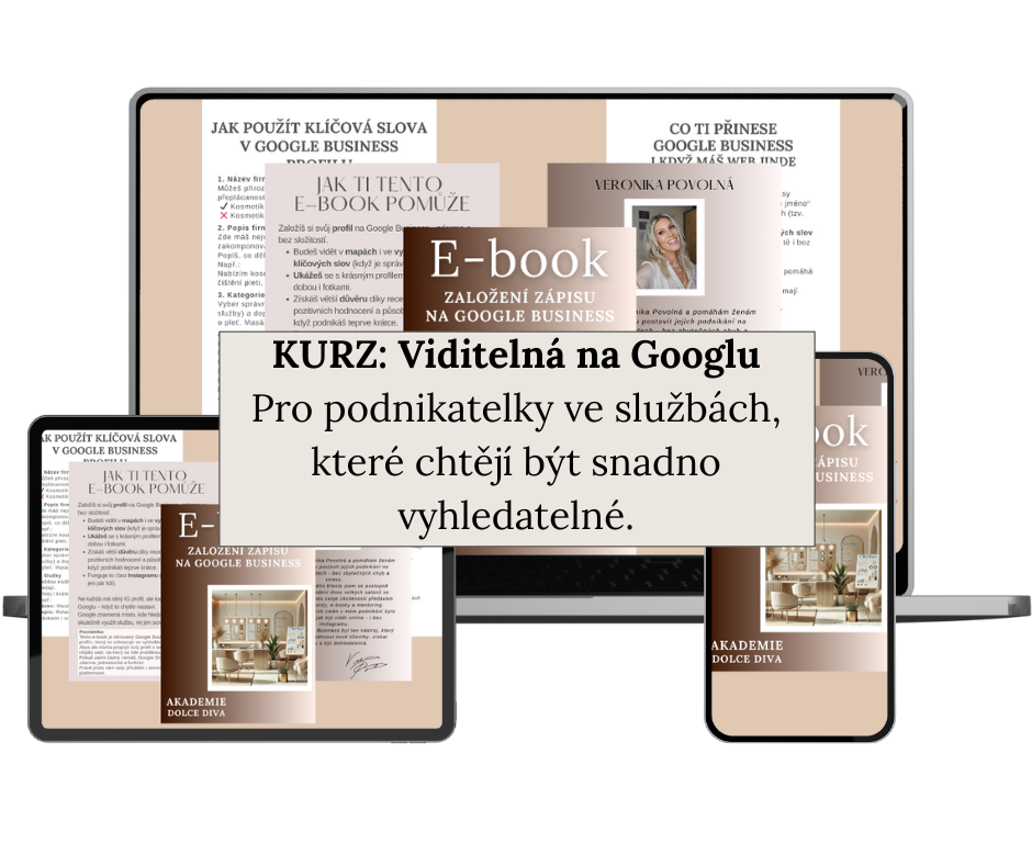 MOJE ODPOVĚĎ: "V kurzu vše vysvětluji krok za krokem, úplně bez složitých technických prvků. Je to přesně pro vás, kdo si o sobě myslí, že na techniku nejste. Naučíte se přesně to, co opravdu potřebujete k tomu, aby vás lidé na Googlu našli - bez zbytečných složitostí. "