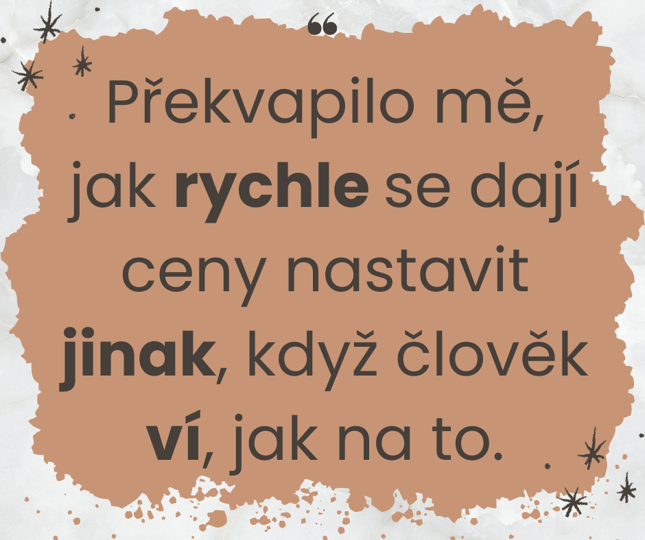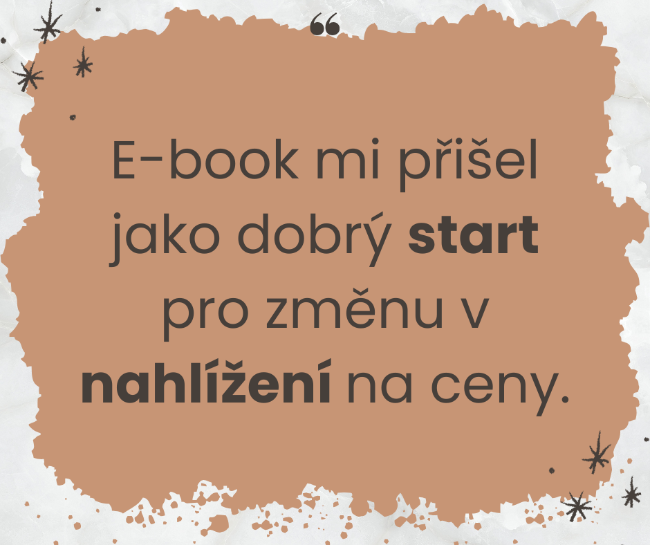 MOJE ODPOVĚĎ: "Díky e-booku uděláte hned ceník správně. Dostanete jasný a jednoduchý postup. Je to mnohem lepší, než pak ceny upravovat "za chodu"."