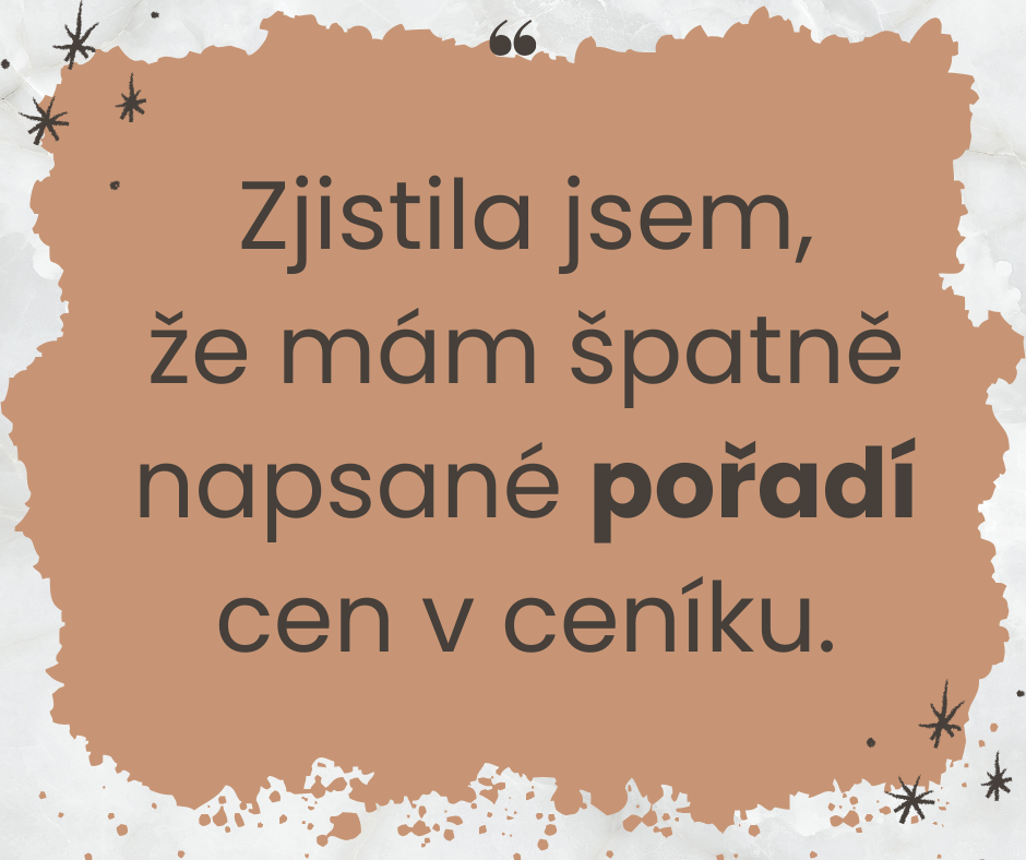 MOJE ODPOVĚĎ: „To, že ceník funguje, neznamená, že z něj získáváte maximum. Možná máte nastavené ceny tak, aby vám klientky zaplnily diář, ale nevyděláváte tolik, kolik byste mohla. Správně postavený ceník umí: