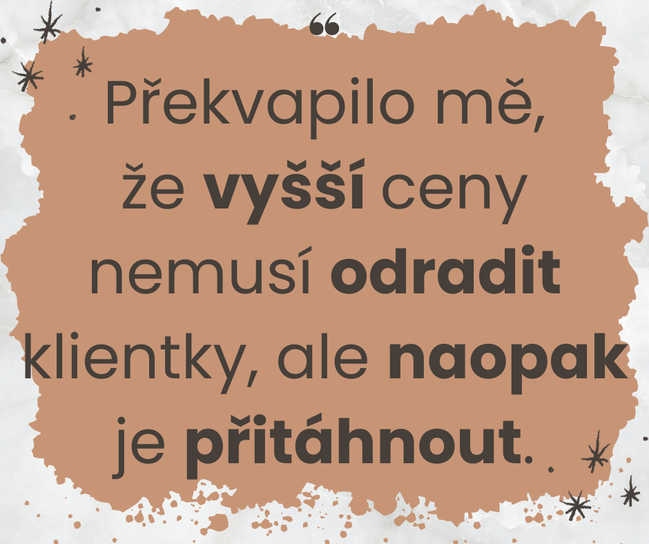 - a naučit se komunikovat svou hodnotu tak, aby klientky rády zaplatily.