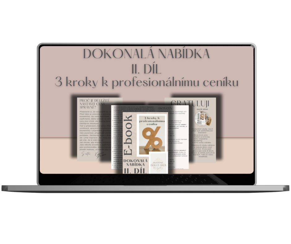 MOJE ODPOVĚĎ: "Ebook obsahuje osvědčené principy psychologie cen, které používají úspěšné salony - a samozřejmě i velké společnosti a my samy jsme jimi ovlivňovány denně. Nejsou to teorie, ale postupy, které okamžitě zlepší, jak klientky vnímají vaše služby. "