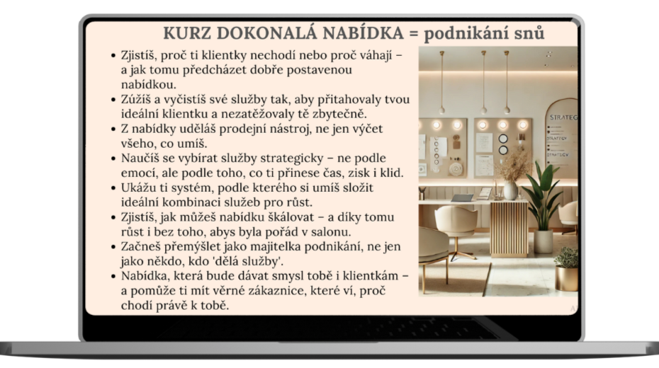 Kurz, který vás provede správným nastavením nabídky od A do Z, která bude pro vaše klienty atraktivní a oni si díky ní vyberou právě vás.